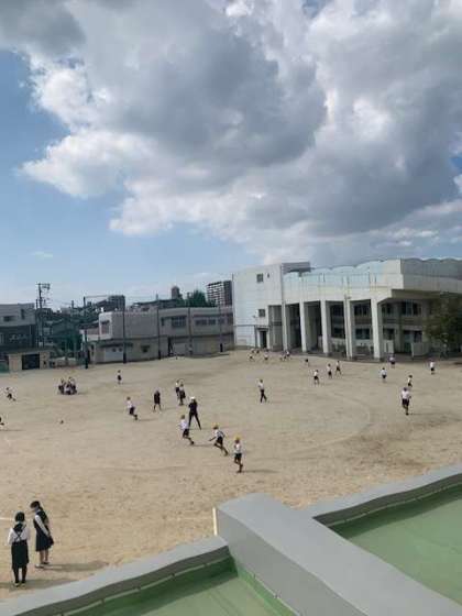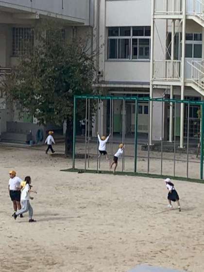 休み時間、子どもたちは元気に遊んでいます。昼休みは、何人かの担任の先生も一緒に遊んでいます。