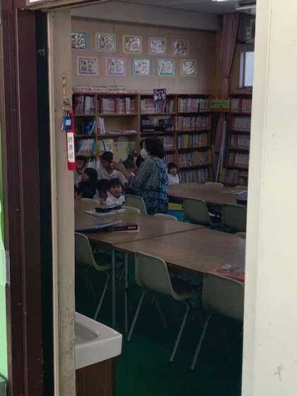 火曜日の時間割に入っているクラスには、写真のような本の「読み聞かせ」を行ってくれます。