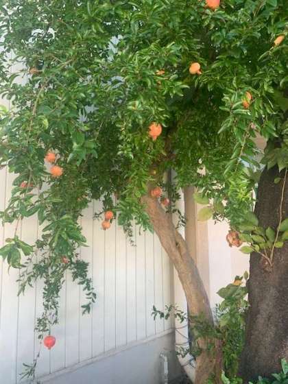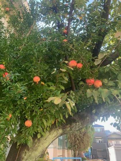 校内にザクロを見つけました。かなり立派に実っています。鳥たちは、美味しいこと知っているようでしっかり食べています。