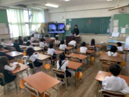 今朝は、教室で落ち着いて話を聴いています。今週は読書週間が始まりました。図書委員会作成のスタンプラリーが始まります。