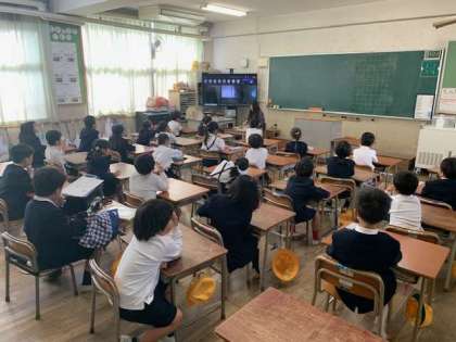 月の始めの全校朝会以外は、教室でオンラインで朝会を行います。