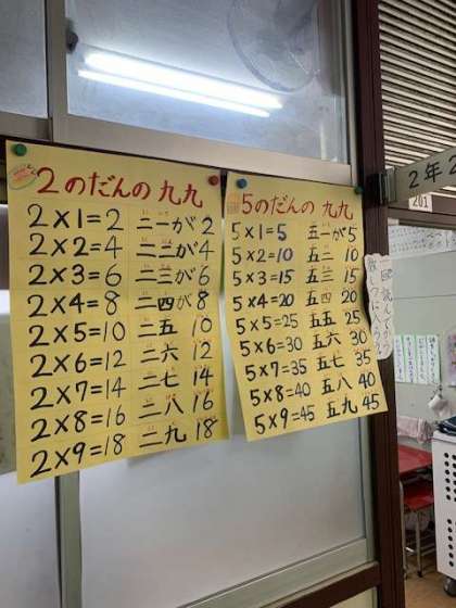 2の段と5の段、まずはこのかけ算を1日一回は言ってから教室に入ります。