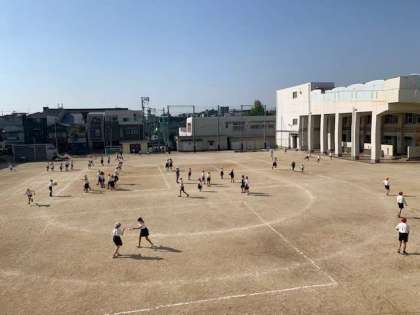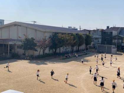 今日も先生と一緒に遊ぶ姿を見かけます。運動場には、3人の担任の先生が子どもたちとおにごっこをしていました。