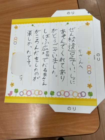 2年生が、全校遠足でお世話になったペア学年の5年生に向けて、お礼の手紙を書きました。