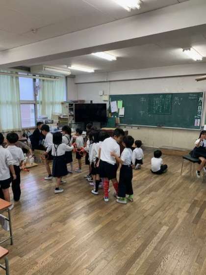 一年生は、お店屋さんの練習です。お客さん役とお店屋さん役と分かれてリハーサルをしています。