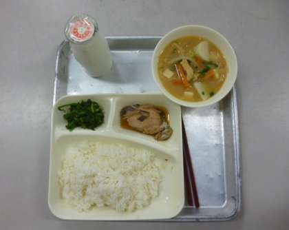 なまりぶしのしょうが煮 みそ汁 ほうれん草のごまあえ