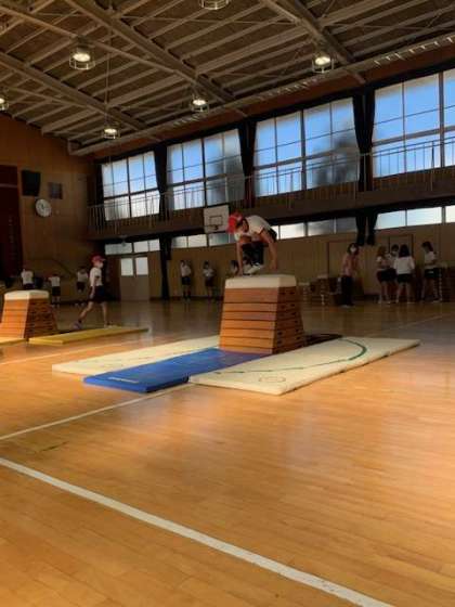 抱え込み跳びに取り組んでいます。