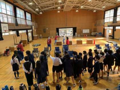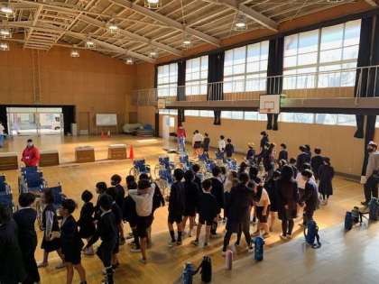 大阪市立心身リハビリテーションセンターの方を講師にお招きして、車いすの体験学習を行いました。