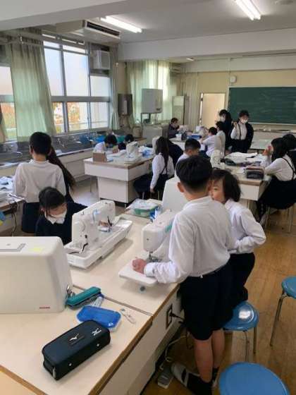 ナップサップ作りもどんどんと進んでいます。仮縫いも終わり、ミシンを使っている子も中にはいます。
