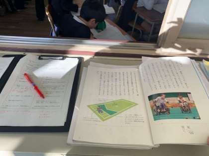 今日は3年生の教室で国語科の授業研究会を行っています。