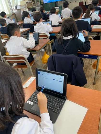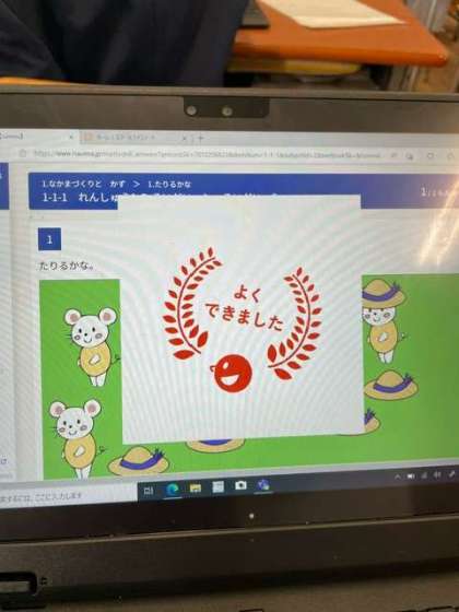 1年生が端末を使って、デジタルドリルの問題に取り組んでいました。