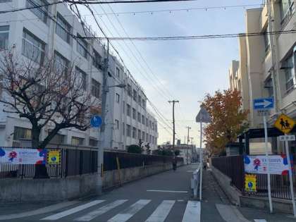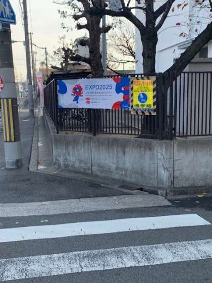 横断幕が、大阪市から送られてきました。仲良く、中学校と一緒に向かい合わせに設置しました。