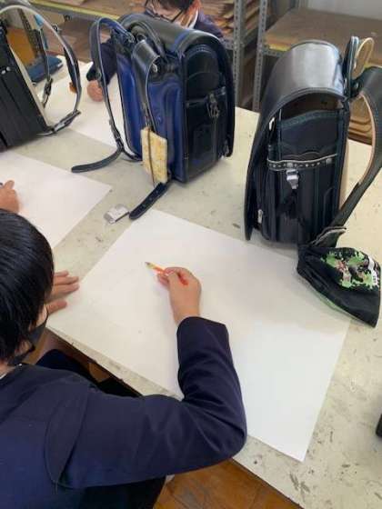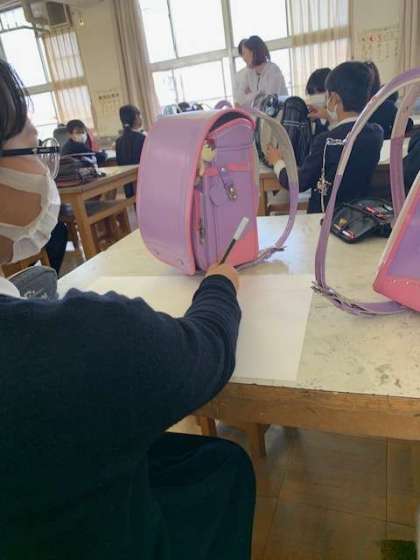 6年間使っているランドセルを描いています。もしかすると、描きながら6年間の思い出や残りの学校生活を意識するかもしれません。