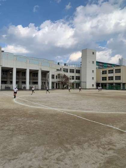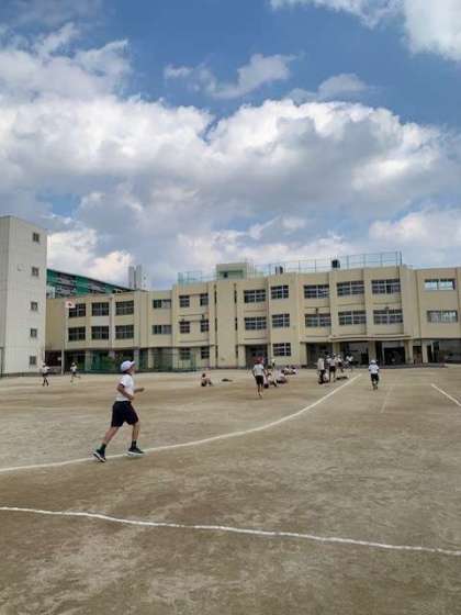 体育科の授業でもかけ足に取り組んでいます。自分のペースでがんばれぇ!!
