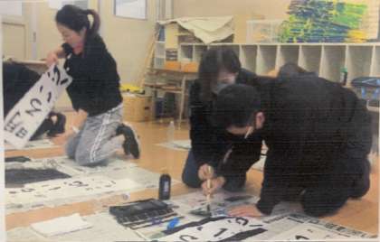 子どもたちに、よりよく書き初めが教えられるように教職員も書き初めをしました。