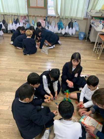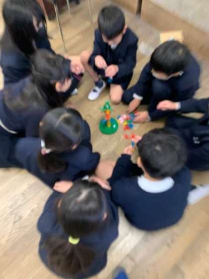 ふくわらい、百人一首、カルタ、ジェンガ…たくさんの種類の遊びを子どもたちが班で楽しみます。