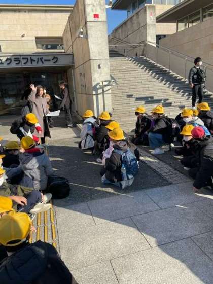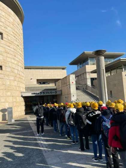 大阪市立クラフトパークに到着しました。午前中は、吹きガラス・とんぼ玉・グラス・ランプ・陶芸・織物・豆皿作りの本格体験プランです。