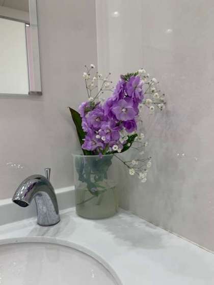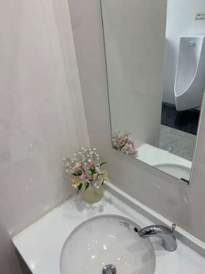 トイレにもお花が…。こんな気遣いができる学校は、素晴らしいです。こういったことができる教職員や子どもたちがいる学校は、落ち着いている証です。