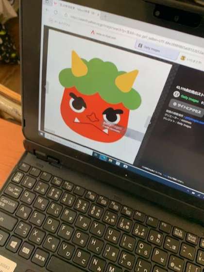 今日のテーマは、節分に出てくる「オニ」についてです。タブレットで鬼のイメージを固めていきながら、それぞれオリジナルのオニを作っていきます。