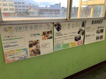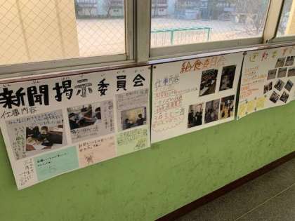 3年生の廊下の前には、次年度に向けた「委員会」「クラブ」の紹介ポスターが貼られています。写真も付いていて、とってもわかりやすいです。