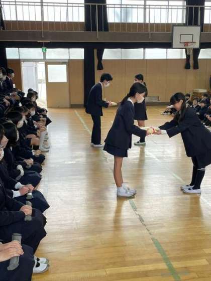 卒業していく6年生を在校生みんなで祝い、お別れの会をしました。