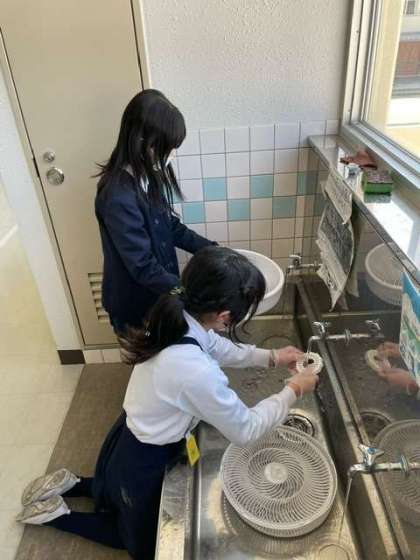 6年生が、卒業する前に教室の大掃除をしました。扇風機を洗ったり、教室出入り口の扉のレールに溜まった埃を取り除いたりするなど、普段は掃除しない場所もピカピカにしました。