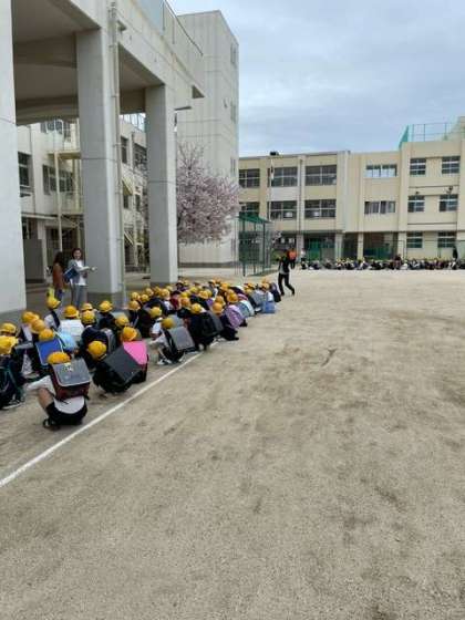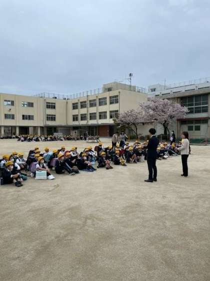 今年、お世話になる教職員の紹介の後、運動場でクラス分けを行いました。1組か2組か、発表の瞬間はいつもドキドキするようです。