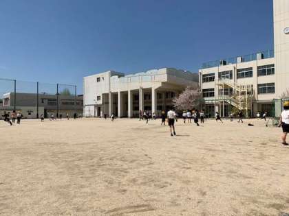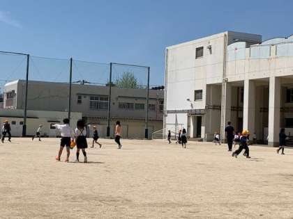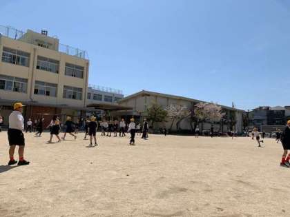 子どもたちと先生も一緒に、休み時間を遊んでいます。お昼の時間は温かく過ごしやすい気候です。