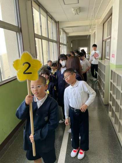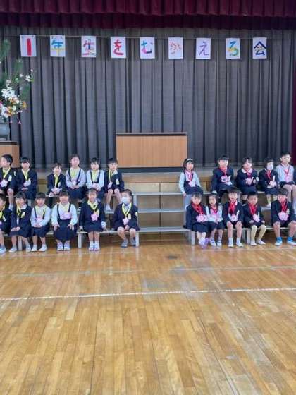1限目に講堂にて「1年生をむかえる会」を行い、全校児童で1年生の入学を祝いました。