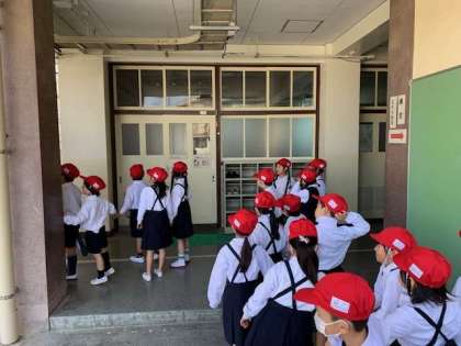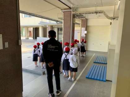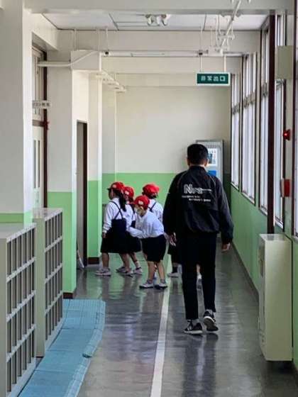 どこにどんな教室があるのか、担任の先生とサポートの先生とまわっています。どこにどんな教室があって、なんの部屋なのかを先生から教えてもらっています。