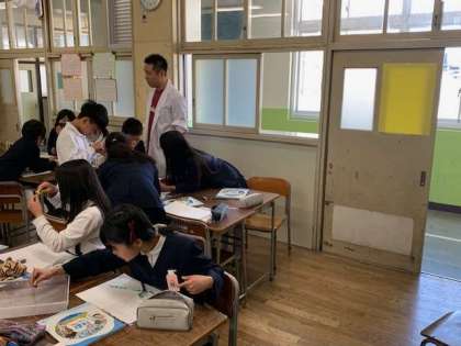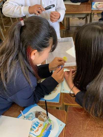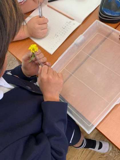 アブラナの観察をしています。花びら、ガク、葉、めしべ、おしべなどなど、それぞれいくつあるかなっ??