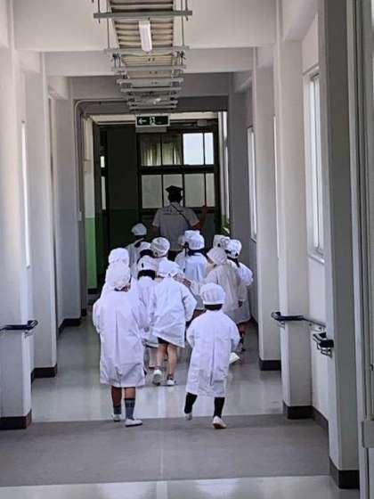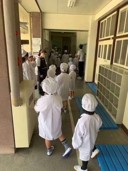 今週の給食時間から、6年生がサポートに入りつつも、1年生が主体的に給食当番のお仕事の行うことが多くしていきます。