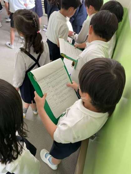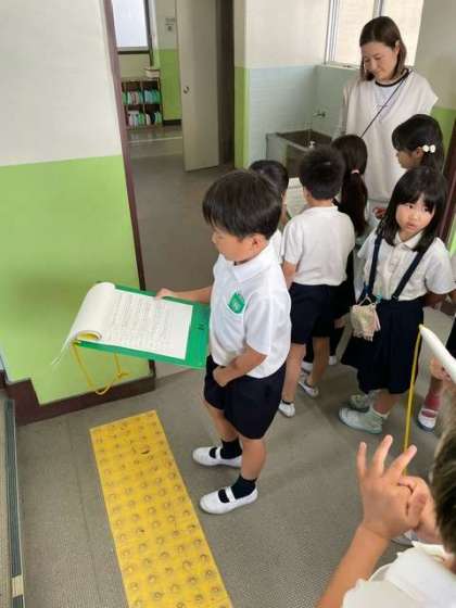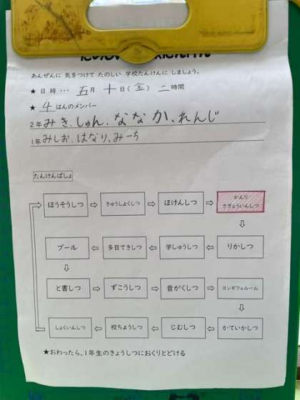 金曜日にせまった学校探検(1・2年)に向けての練習をしました。1年生に、学校内の施設をしっかりと紹介できるか楽しみです。