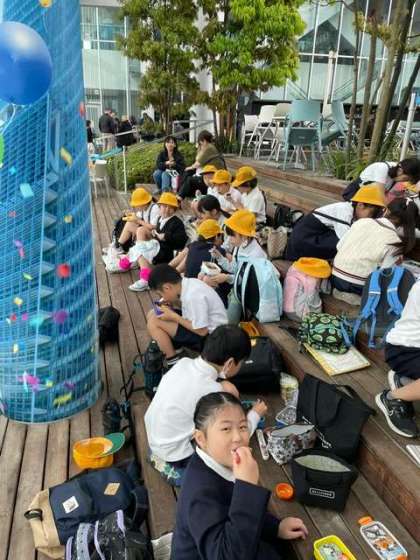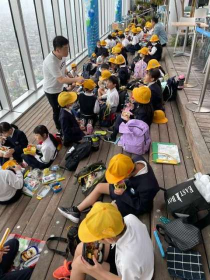 大阪の景色を眺めながら、少し早いお弁当タイムです。