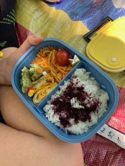 お弁当の時間です。愛情たっぷりのお弁当、お家の方々のご協力ありがとうございます。