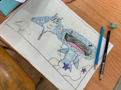 昨日の遠足で見てきたものを描いています。とっても上手でびっくりです。