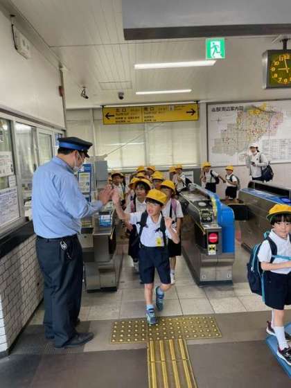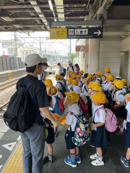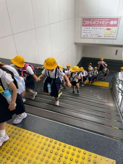 駅まで並んで歩いたり、電車内のマナーを覚えたりするのも今日の勉強です。