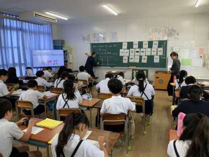 今日は加美南中学校の英語の先生に来てもらう日です。team teaching(T、T)で授業を進めていきます。