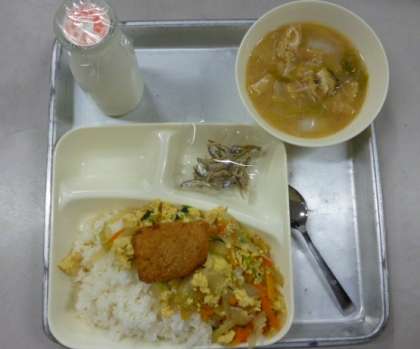 カツ丼 みそ汁 ミニフィッシュ 牛乳