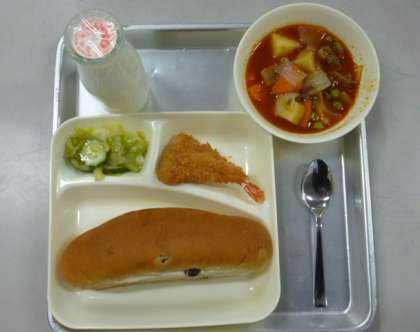 えびフライ 牛肉のケチャップ煮 キャベツときゅうりのサラダ