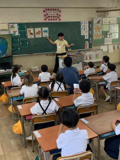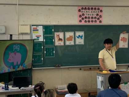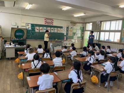 C-NETの先生と動物について、英単語を学んでいます。1年生の元気な発音は、聴いているこちらも元気をもらいます。