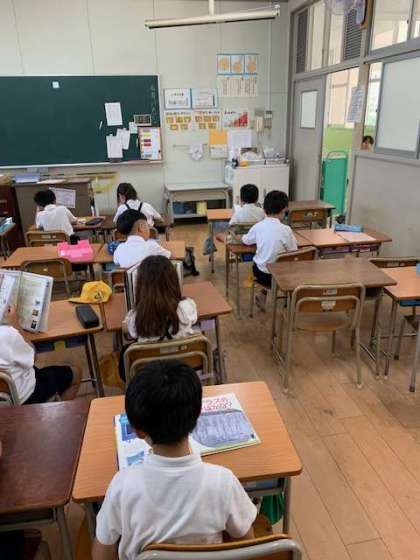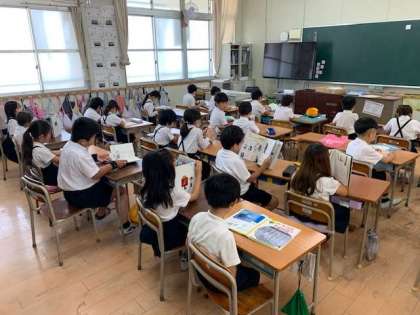 朝の10分間は、自席で本を静かに読む時間です。読んだ本は、平野区の取組による「ひらちゃん読書ノート」に記入します。