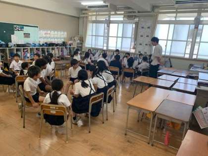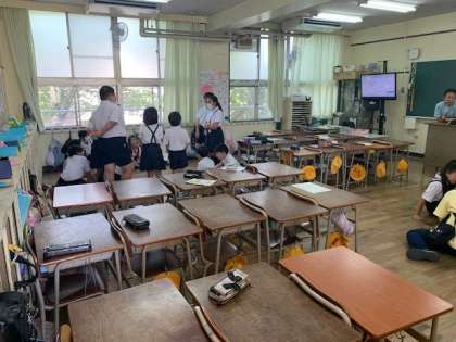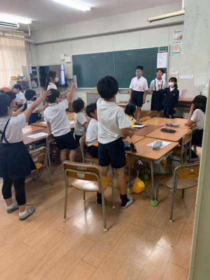 今日は1年生から6年生までの異学年で構成する班で5時間目は遊びます。