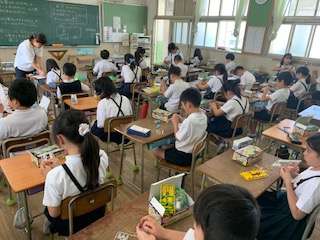 電気の働きについての学習です。細かい一つ一つの部品にまで名前を書いて、今日から組み立ていきます。
