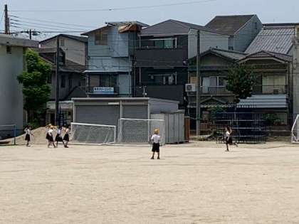 1年生も2年生も元気に運動場に飛び出していきます。今のところは、そこまで暑すぎるということはないですが、熱中症にならないように声はかけていきます。