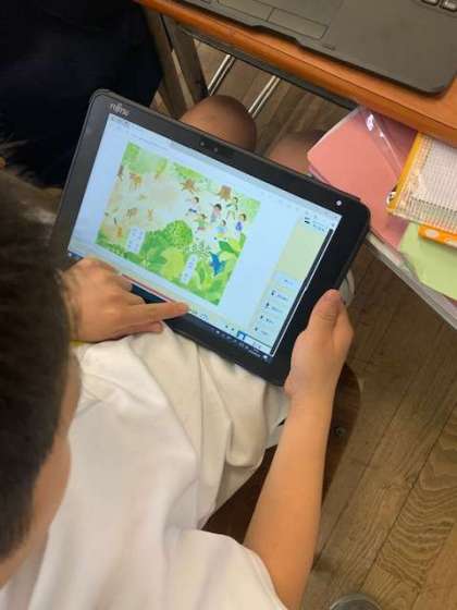 一年生は、つい最近使い始めたばかりのタブレットをもう使いこなしている子がいます。