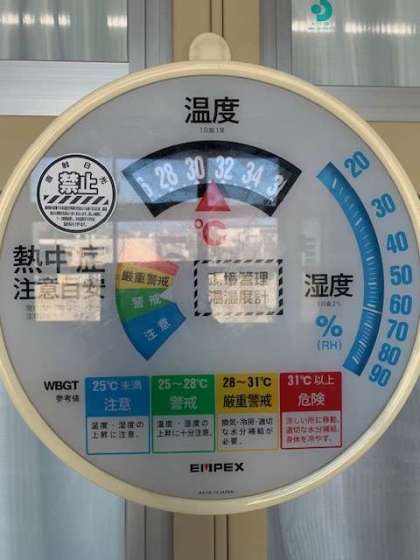 職員室前の廊下で、31度です。