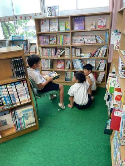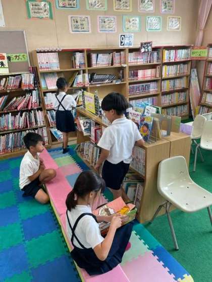 貸し出しの本を2冊ずつ選びました。夏休みは、たくさんの本と出会ってほしいです。