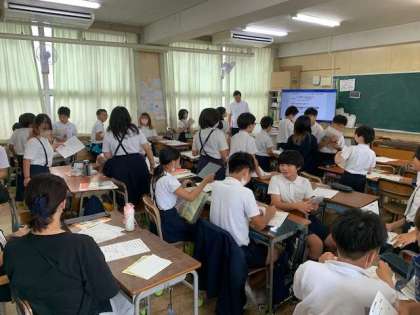 今日は加美南中学校の英語科の先生も来られる日です。