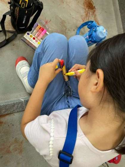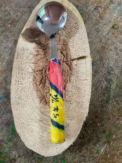 ?油性マジックで柄の部分に文字や絵を描く